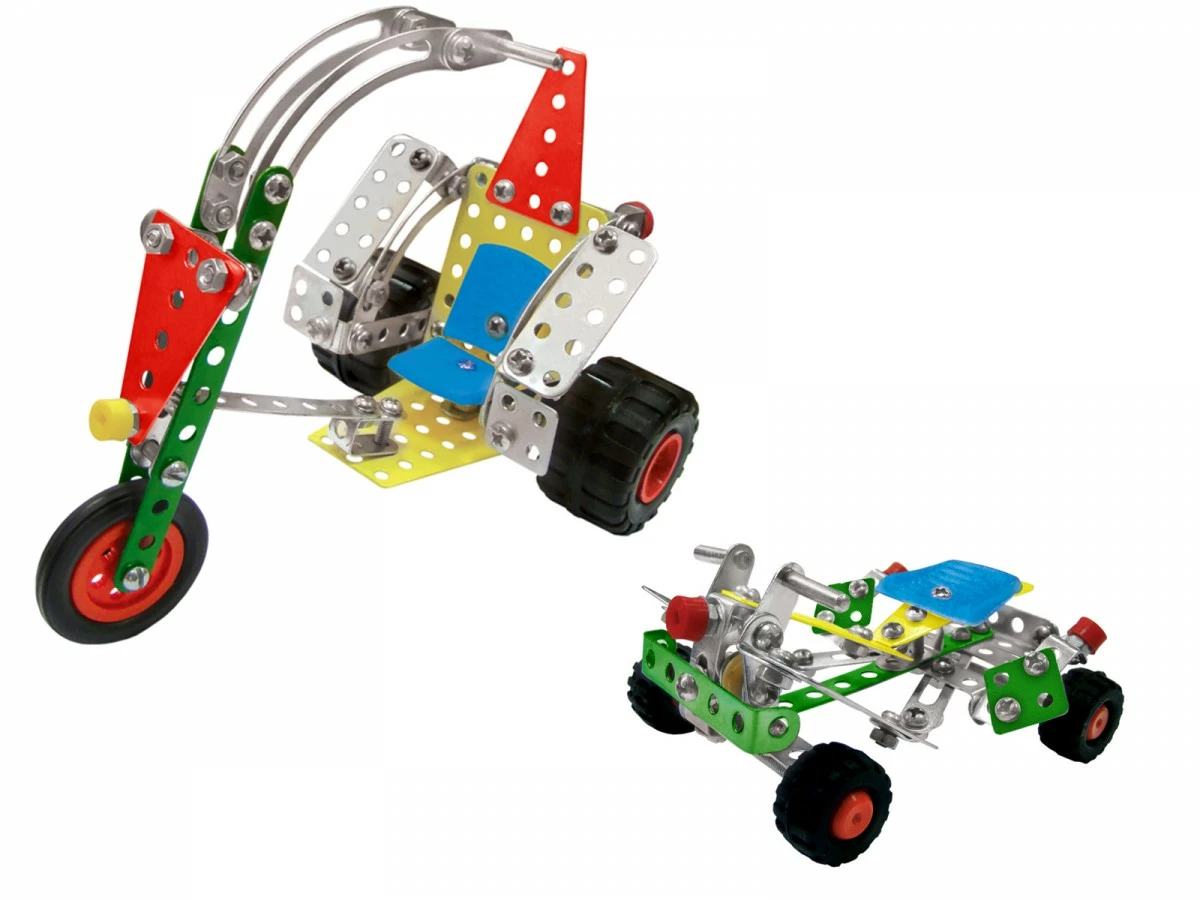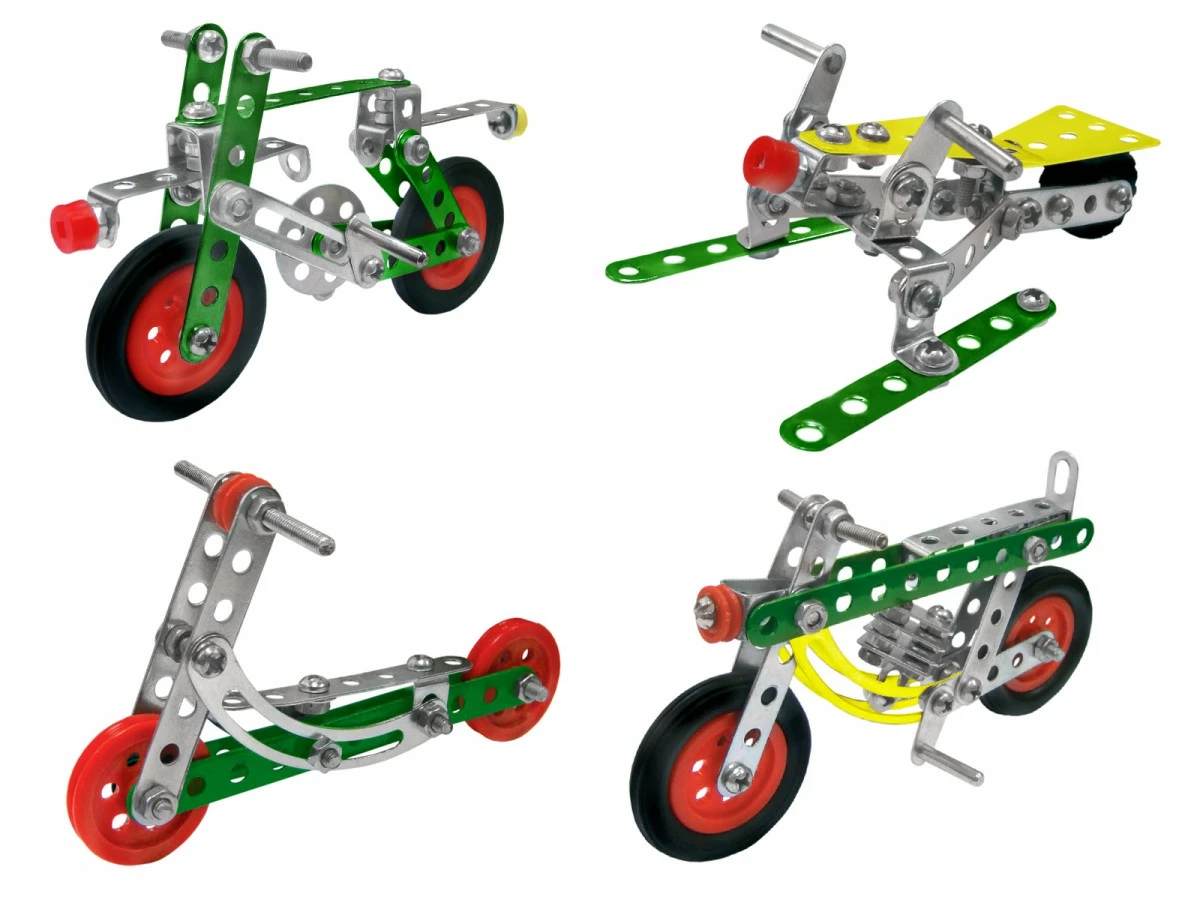 Металевий конструктор (198 деталей) із розширеними дизайнерськими можливостями завдяки цікавим різноколірним пластиковим деталям. Комплектація "Мототранспорт", покрокові кольорові інструкції для збирання моделей мототехніки. Перевага іграшки - металеві деталі різних кольорів. Характерна особливість - пластиковий пенал для зберігання конструктора в розібраному стані. За допомогою цього конструктора дитина може розвивати фантазію, складаючи різні моделі, та отримувати практичні навики роботи з металевими виробами, що стане в пригоді у дорослому житті.