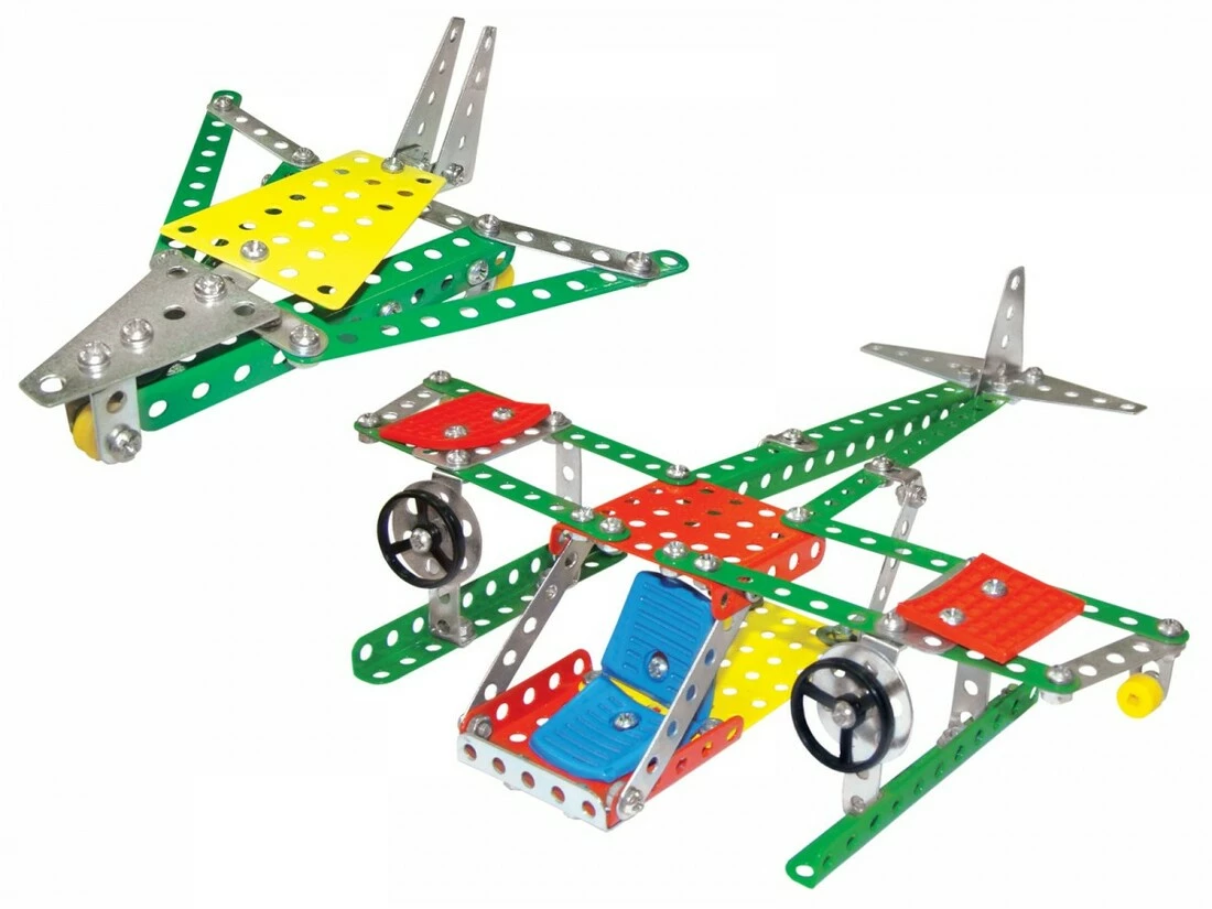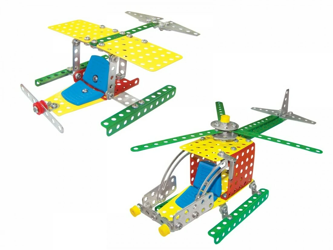 Перевага іграшки - металеві деталі різних кольорів. Характерна особливість - пластиковий пенал для зберігання конструктора в розібраному вигляді. Завдяки цьому конструктору дитина може розвивати фантазію, складаючи різні моделі, і отримувати практичні навички роботи з металевими виробами, що стане в нагоді у дорослому житті. Інструкція металевого конструктора "Повітряний транспорт ТехноК" містить опис 8 моделей: - літак, - вертоліт , - винищувач, - аероплан, - гідроплан, - вертоліт, - літак, і т.д. загалом все, на що здатна фантазія Вашої дитини.