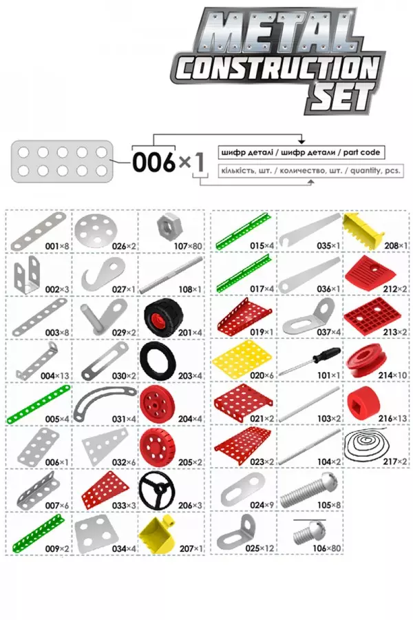 Традиція металевих конструкторів бере свій початок у далекому 18 ст. На цих конструкторах зросла безліч поколінь відомих винахідників, механіків та інженерів. Завдяки іграшці хлопчики (і дівчатка) набувають перших навичок з'єднання деталей гвинтами , гайками, роботи викруткою та ключами. Вони власними руками створюють справжні "працюючі" моделі : різноманітні автомобілі, вертоліт, кран, трактор, поїзд, позашляховик, танк, мотоцикл та багато іншого техніки. Робота з конструктором викликає у дітей інтерес до роботи машин і механізмів , дає базові поняття про взаємодію окремих частин. Знайомить з технічними назвами деталей, простими кресленнями та схемами. Саме вЦікавою та ненав'язливою грою краще розвиваються навички логічного мислення , просторова уява, уважність та фантазія. Металеві конструктори використовуються під час уроків у початковій школі як набори для конструювання з різними способами з'єднання (НУШ). Нова методика STEM (Science, Technology, Engineering, Mathematics), що набирає обертів, активно застосовує такі конструктори в освітньому процесі . Наприклад, можна зібрати модель молекули, квітки, вітряка чи динозавра. Дитина не просто знайомиться з новими напрямками розвитку точних наук та інженерії, а вчиться реалізовувати вивчене на практиці. Металеві конструктори ТехноК відрізняються високою якістю та різноманітністю деталей , цікавим поєднанням металевих та пластикових запчастин . У кожному наборі є викрутки та ключі для складання моделей . Крім того, малий винахідник може вигадати власні варіанти складання і нові цікаві моделі. Творча робота є основою розвитку креативного мислення дитини. Ігри з конструктором ТехноК принесуть багато користі та будуть цікаві не лише малюкам, а й дорослим. " Суперуніверсал ТехноК " - це набір для конструювання з різними способами з'єднання деталей . З елементів набору можна зібрати 15 різних деталей згідно з інструкцією. Після гри – всі елементи конструткора зручно зберігати у пластиковому контейнері. Вага 1485 р габаритні розміри 30 ? 17.5 ? 4.5 см Розміри упаковки 36.5 ? 30 ? 19 см