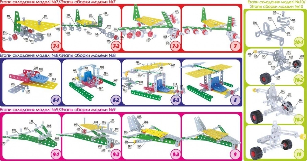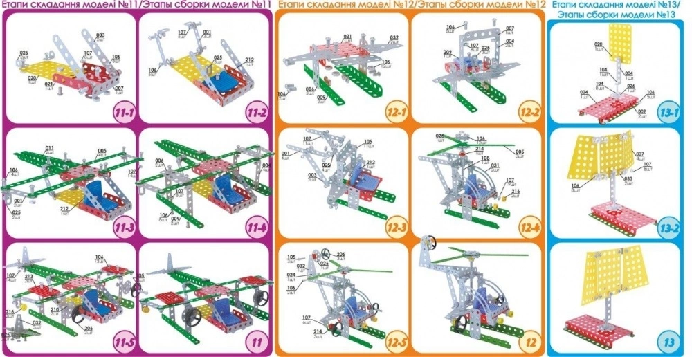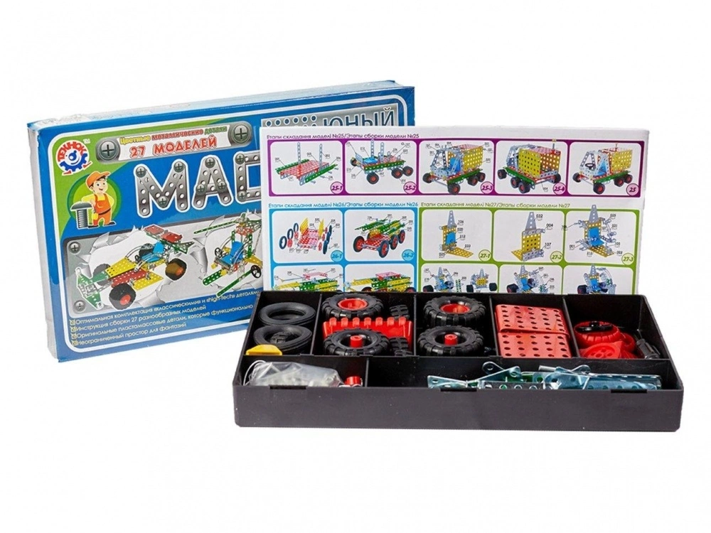 Вага 1265 г Габаритні розміри 30?17.5?3.5 см "Юний майстер ТехноК" (290 деталей / 27 моделей) - металевий конструктор із розширеними дизайнерськими можливостями завдяки цікавим різноколірним пластиковим деталям. Комплектація "Класика +". Характерна особливість - пластиковий пенал для зберігання конструктора в розібраному стані. За допомогою цього конструктора дитина може розвивати фантазію, складаючи різні моделі (кран), та отримувати практичні навики роботи з металевими виробами, що стане в пригоді у дорослому житті.