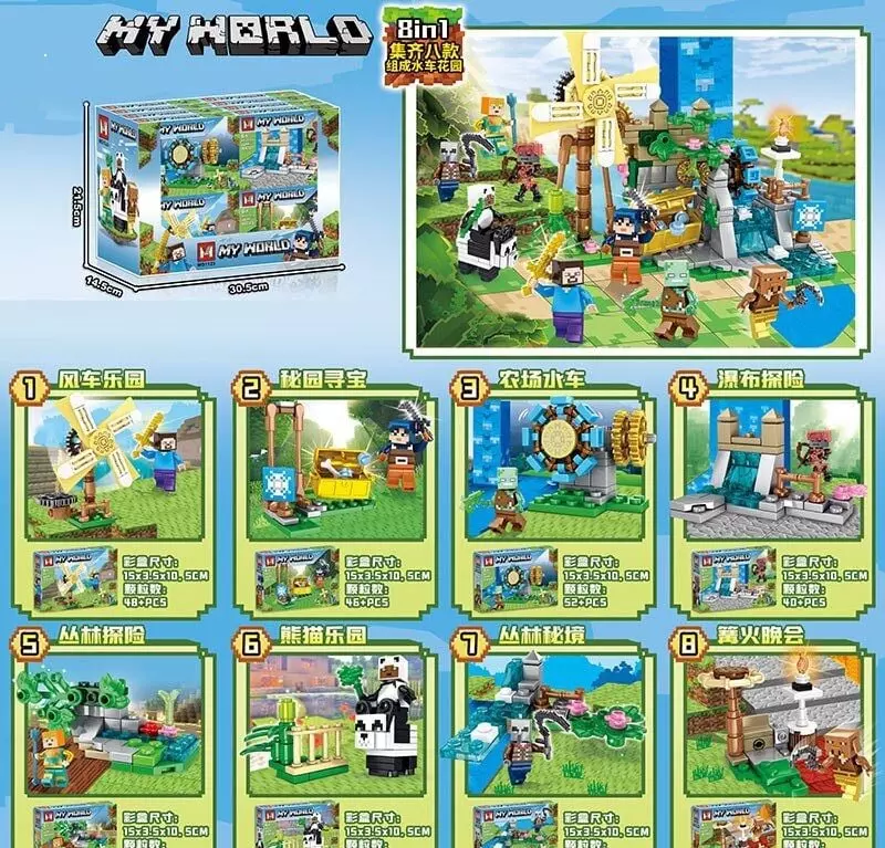 Кількість елементів може змінюватись виробником. Тематика – майнкрафт. Серія – "My world". Тип кріплення – пазовий. Розмір деталей – стандарт. Мінімальний вік – 6 років. Особливості: - конструктор відмінно розвиває дрібну моторику, логічне мислення, послідовність дій та посидючість; - з 8 наборів можна скласти млин; - представлений у форматі відомих героїв; - ігровий набір чудово деталізований, кожна його деталь максимально опрацьована; - у комплекті з конструктором представлена покрокова інструкція.