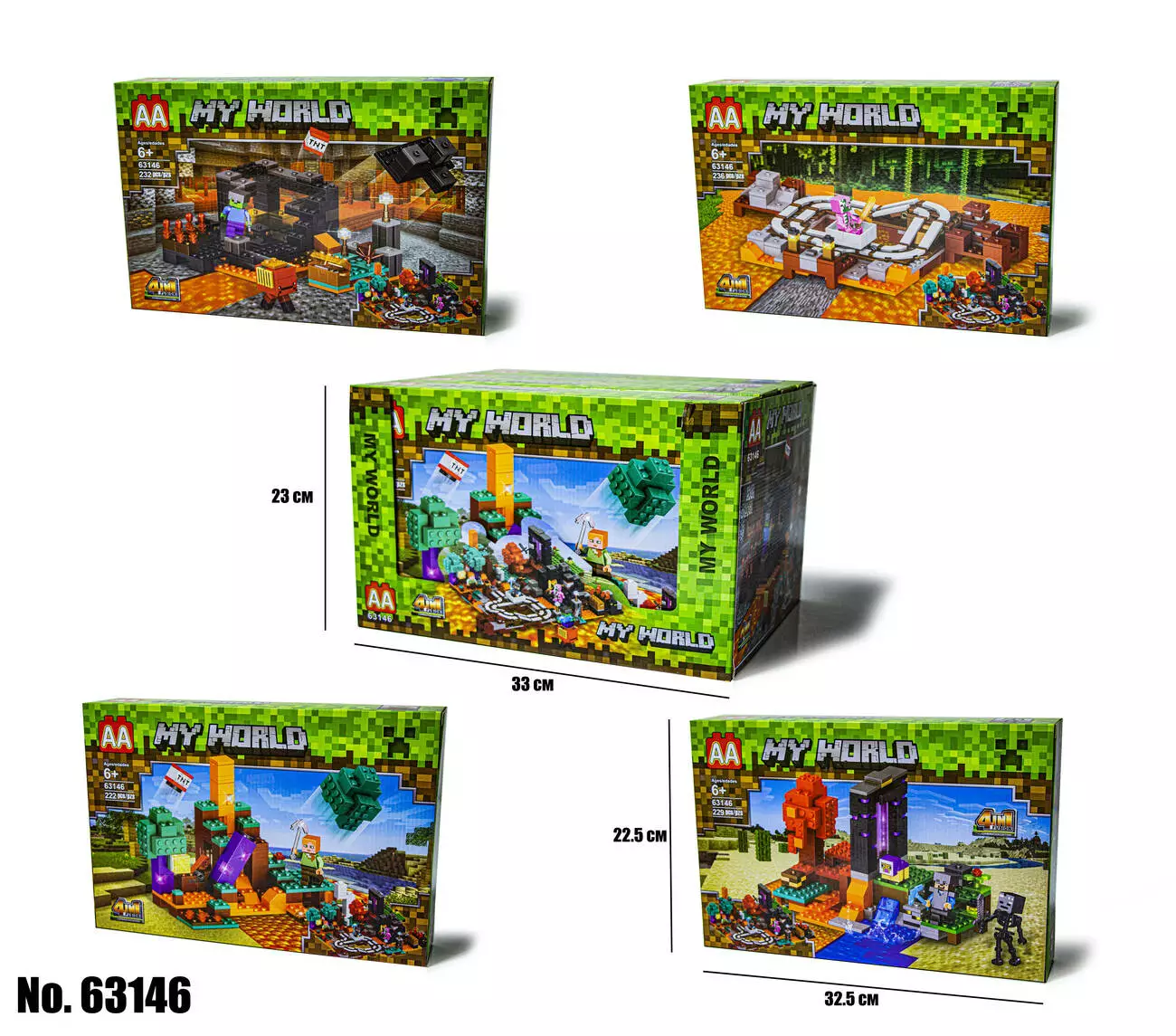 <p><em><strong>Конструктор Minecraft 63146 П</strong></em><strong>ортал В Нижний Мир</strong><em><strong> 4 Вида</strong></em></p><br /> <p><strong>Цена за 1 Вид</strong></p><br /> <p>Конструктор Minecraft 4 Вида – это аналог известного производителя, созданный для поклонников одной из самых успешных компьютерных игр в истории – «Майнкрафт».</p><br /> <p>Тематический конструктор позволит ребенку воссоздать локации из популярной игры прямо у себя дома.Каждый вид включает в себя качественные детали и героя из известной локации , которые хорошо и надежно крепятся между собой.Приобретая все виды конструктора, ребенок сможет сложить целый сюжет.</p><br /> <p>Возможность воссоздавать неповторимый игровой мир, не прибегая к использованию компьютера, позволяет развить воображение у ребенка, а также стимулирует развитие мелкой моторики. Процесс строительства из красочных блоков конструктора очень увлекательный, у ребенка появляется возможность для творчества. Также это развивает логическое мышление, учит его сосредотачиваться и концентрироваться на поставленной задаче. Для детей и взрослых станет отличным способом совместного времяпровождения, ведь собирать конструктор вместе – это очень интересно. Все детали конструктора отлично совмещаются между собой, а так же прекрасно крепятся к конструкторам других марок. </p><br />