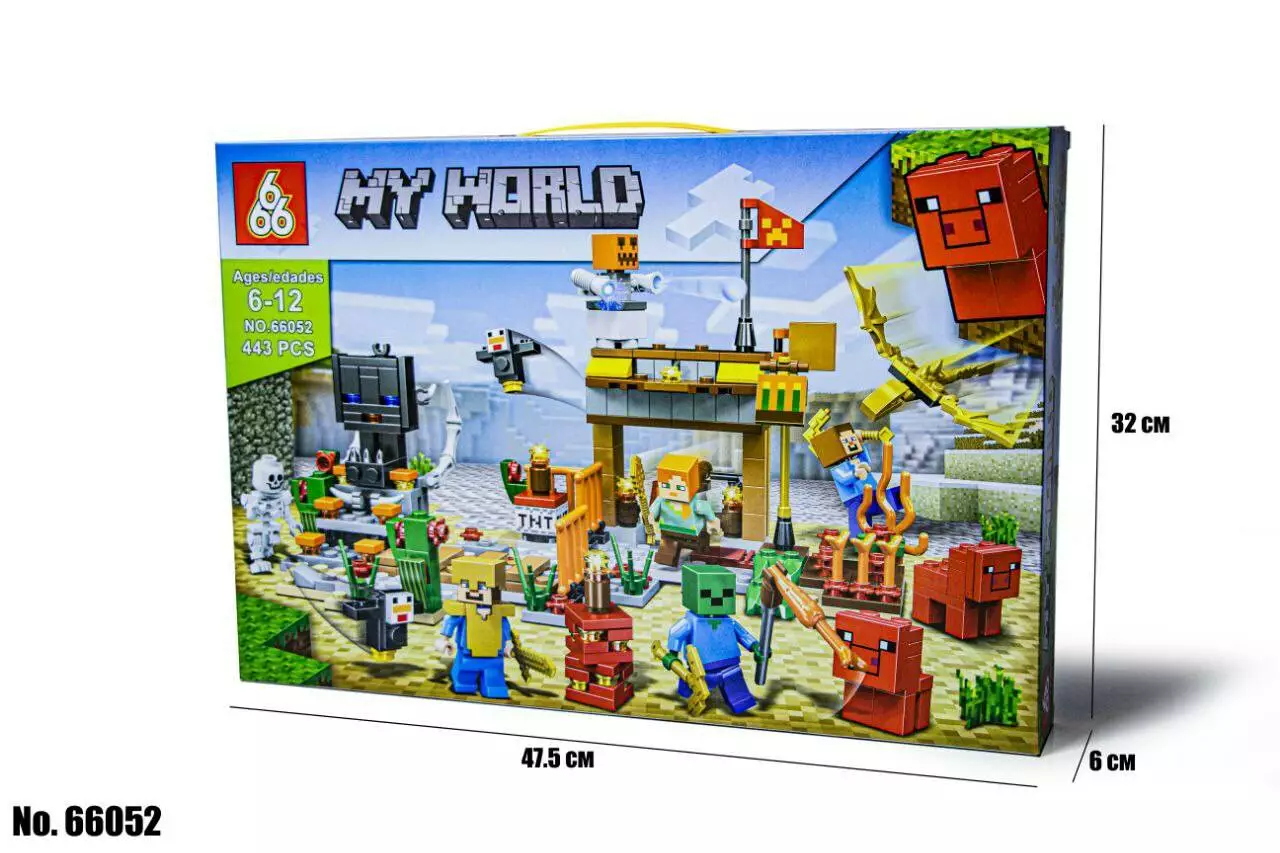 <p><em><strong>Конструктор Minecraft 66052, 443 детали</strong></em></p><br /> <p>Известный детский конструктор Minecraft - это аналог компьютерной игры, который перенесет ваше чадо из виртуального мира в реальный и покажет объекты такими, какие они есть на самом деле. Собирая конструктор ребёнок развивает: мелкую моторику, мышление, внимание, усидчивость, логику.</p><br /> <p>Детский конструктор Minecraft 66052 рекомендуется для детей в возрасте от 6 до 14 лет. Он представляет собой отличный подарок для любого ребенка, который интересуется игрой Minecraft и любит собирать конструкторы.</p><br /> <p><strong>Особенности</strong>:</p><br /> <ul><br /> <li>В набор входят мини-фигурки персонажей Minecraft</li><br /> <li>Конструктор позволяет детям развивать свои творческие навыки, представляя и строя игровые сцены в реальной жизни.</li><br /> <li>Набор развивает у детей умение работать с инструкциями и следовать им, а также улучшает их воображение и логическое мышление.</li><br /> <li>Конструктор подходит для детей в возрасте от 6 лет и старше, и может использоваться как инструмент для совместной игры и развлечения для всей семьи.</li><br /> </ul><br /> <p><strong>Характеристики</strong>:</p><br /> <ul><br /> <li>Тип: Блоковый конструктор.</li><br /> <li>Цвет: Разноцветный.</li><br /> <li>Пол: Девочка | Мальчик</li><br /> <li>Матариал: Пластик.</li><br /> </ul><br /> <p> </p><br />