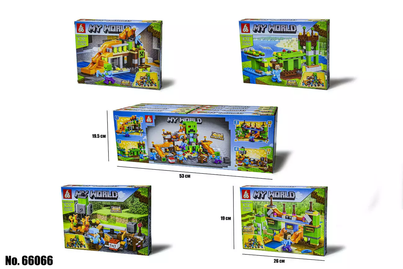 <p><em><strong>Конструктор Minecraft 66066 4 Вида</strong></em></p><br /> <p><strong>Цена за 1 Вид</strong></p><br /> <p>Конструктор Minecraft 4 Вида – это аналог известного производителя, созданный для поклонников одной из самых успешных компьютерных игр в истории – «Майнкрафт».</p><br /> <p>Серия конструкторов Minecraft по известной всем, без исключения легендарной игре. Больше десяти лет назад игру официально выпустили и практически сразу она завоевала огромную аудиторию поклонников от маленьких до взрослых. Основной особенностью игры является полностью редактируемый трехмерный мир, который состоит из блоков. </p><br /> <p>Тематический конструктор позволит ребенку воссоздать локации из популярной игры прямо у себя дома.Каждый вид включает в себя качественные детали и героя из известной локации , которые хорошо и надежно крепятся между собой.Приобретая все виды конструктора, ребенок сможет сложить целый сюжет.</p><br /> <p>Возможность воссоздавать неповторимый игровой мир, не прибегая к использованию компьютера, позволяет развить воображение у ребенка, а также стимулирует развитие мелкой моторики. Процесс строительства из красочных блоков конструктора очень увлекательный, у ребенка появляется возможность для творчества. Также это развивает логическое мышление, учит его сосредотачиваться и концентрироваться на поставленной задаче. Для детей и взрослых станет отличным способом совместного времяпровождения, ведь собирать конструктор вместе – это очень интересно. Все детали конструктора отлично совмещаются между собой, а так же прекрасно крепятся к конструкторам других марок. </p><br />