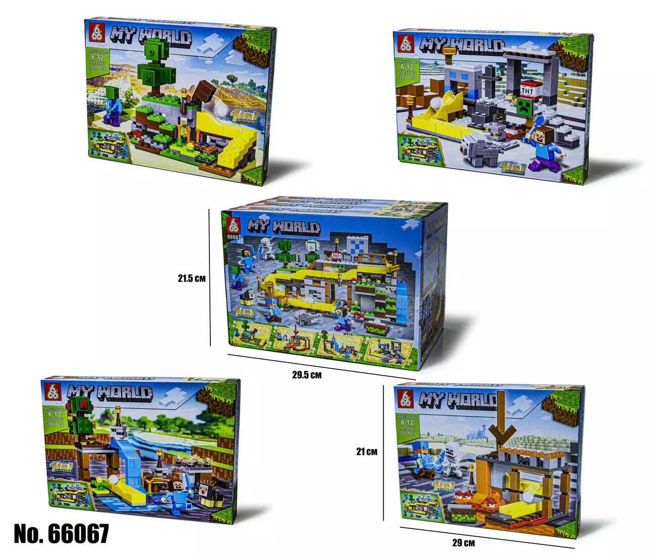 <p><em><strong>Конструктор Minecraft 66067 4 Вида</strong></em></p><br /> <p><strong>Цена за 1 Вид</strong></p><br /> <p>Конструктор Minecraft 4 Вида – это аналог известного производителя, созданный для поклонников одной из самых успешных компьютерных игр в истории – «Майнкрафт».</p><br /> <p>Серия конструкторов Minecraft по известной всем, без исключения легендарной игре. Больше десяти лет назад игру официально выпустили и практически сразу она завоевала огромную аудиторию поклонников от маленьких до взрослых. Основной особенностью игры является полностью редактируемый трехмерный мир, который состоит из блоков. </p><br /> <p>Тематический конструктор позволит ребенку воссоздать локации из популярной игры прямо у себя дома.Каждый вид включает в себя качественные детали и героя из известной локации , которые хорошо и надежно крепятся между собой.Приобретая все виды конструктора, ребенок сможет сложить целый сюжет.</p><br /> <p>Возможность воссоздавать неповторимый игровой мир, не прибегая к использованию компьютера, позволяет развить воображение у ребенка, а также стимулирует развитие мелкой моторики. Процесс строительства из красочных блоков конструктора очень увлекательный, у ребенка появляется возможность для творчества. Также это развивает логическое мышление, учит его сосредотачиваться и концентрироваться на поставленной задаче. Для детей и взрослых станет отличным способом совместного времяпровождения, ведь собирать конструктор вместе – это очень интересно. Все детали конструктора отлично совмещаются между собой, а так же прекрасно крепятся к конструкторам других марок. </p><br />