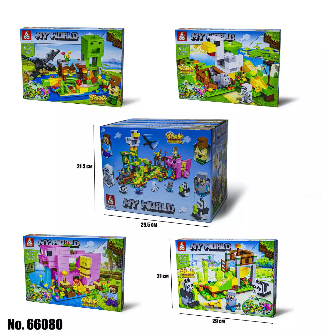<p><em><strong>Конструктор Minecraft 66080 4 Вида</strong></em></p><br /> <p><strong>Цена за 1 Вид</strong></p><br /> <p>Конструктор Minecraft 4 Вида – это аналог известного производителя, созданный для поклонников одной из самых успешных компьютерных игр в истории – «Майнкрафт».</p><br /> <p>Серия конструкторов Minecraft по известной всем, без исключения легендарной игре. Больше десяти лет назад игру официально выпустили и практически сразу она завоевала огромную аудиторию поклонников от маленьких до взрослых. Основной особенностью игры является полностью редактируемый трехмерный мир, который состоит из блоков. </p><br /> <p>Тематический конструктор позволит ребенку воссоздать локации из популярной игры прямо у себя дома.Каждый вид включает в себя качественные детали и героя из известной локации , которые хорошо и надежно крепятся между собой.Приобретая все виды конструктора, ребенок сможет сложить целый сюжет.</p><br /> <p>Возможность воссоздавать неповторимый игровой мир, не прибегая к использованию компьютера, позволяет развить воображение у ребенка, а также стимулирует развитие мелкой моторики. Процесс строительства из красочных блоков конструктора очень увлекательный, у ребенка появляется возможность для творчества. Также это развивает логическое мышление, учит его сосредотачиваться и концентрироваться на поставленной задаче. Для детей и взрослых станет отличным способом совместного времяпровождения, ведь собирать конструктор вместе – это очень интересно. Все детали конструктора отлично совмещаются между собой, а так же прекрасно крепятся к конструкторам других марок. </p><br />