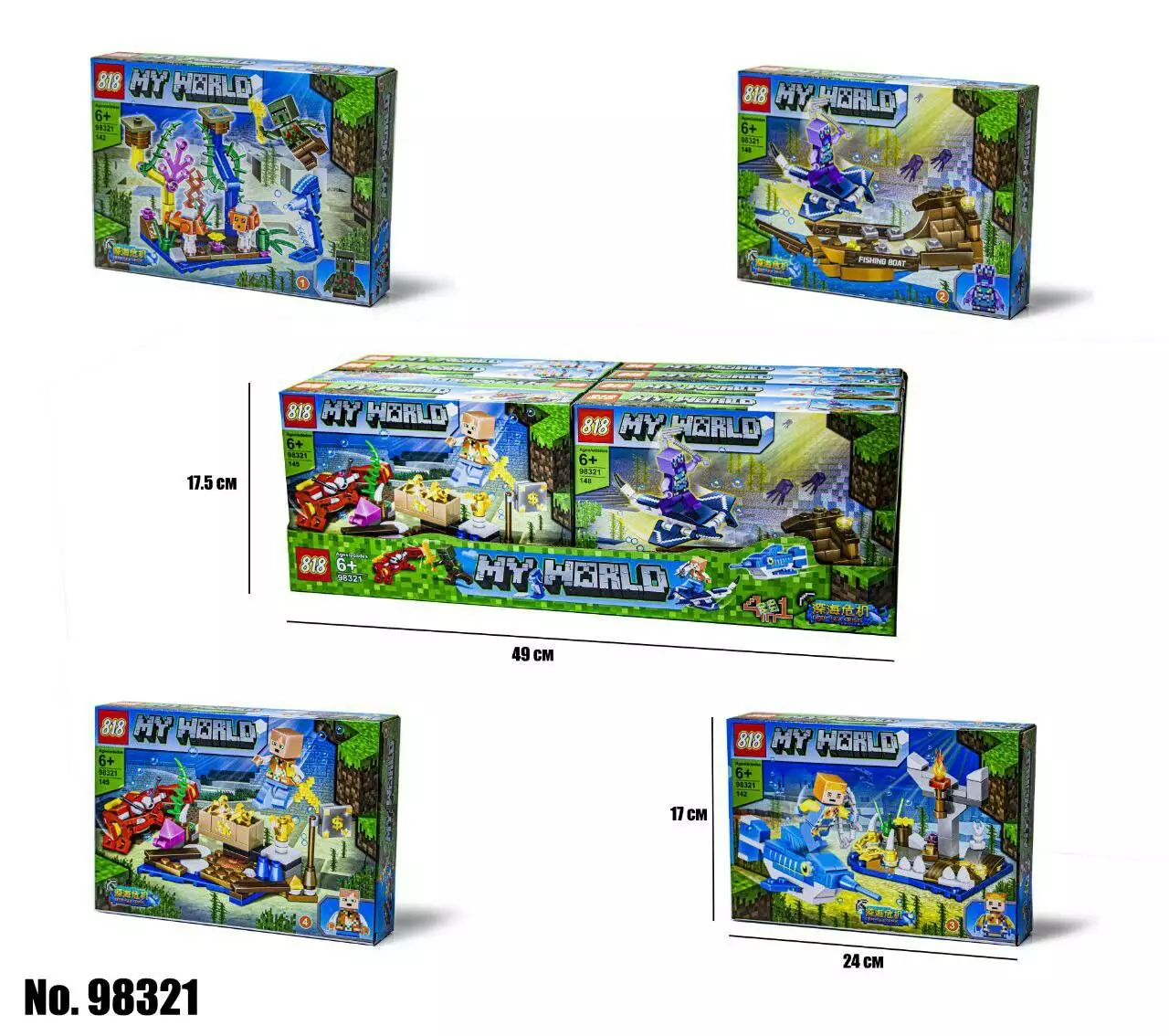 <p><em><strong>Конструктор Minecraft 98321 4 Вида</strong></em></p><br /> <p><strong>Цена за 1 Вид</strong></p><br /> <p>Конструктор Minecraft 4 Вида – это аналог известного производителя, созданный для поклонников одной из самых успешных компьютерных игр в истории – «Майнкрафт».</p><br /> <p>Серия конструкторов Minecraft по известной всем, без исключения легендарной игре. Больше десяти лет назад игру официально выпустили и практически сразу она завоевала огромную аудиторию поклонников от маленьких до взрослых. Основной особенностью игры является полностью редактируемый трехмерный мир, который состоит из блоков. </p><br /> <p>Тематический конструктор позволит ребенку воссоздать локации из популярной игры прямо у себя дома.Каждый вид включает в себя качественные детали и героя из известной локации , которые хорошо и надежно крепятся между собой.Приобретая все виды конструктора, ребенок сможет сложить целый сюжет.</p><br /> <p>Возможность воссоздавать неповторимый игровой мир, не прибегая к использованию компьютера, позволяет развить воображение у ребенка, а также стимулирует развитие мелкой моторики. Процесс строительства из красочных блоков конструктора очень увлекательный, у ребенка появляется возможность для творчества. Также это развивает логическое мышление, учит его сосредотачиваться и концентрироваться на поставленной задаче. Для детей и взрослых станет отличным способом совместного времяпровождения, ведь собирать конструктор вместе – это очень интересно. Все детали конструктора отлично совмещаются между собой, а так же прекрасно крепятся к конструкторам других марок. </p><br />