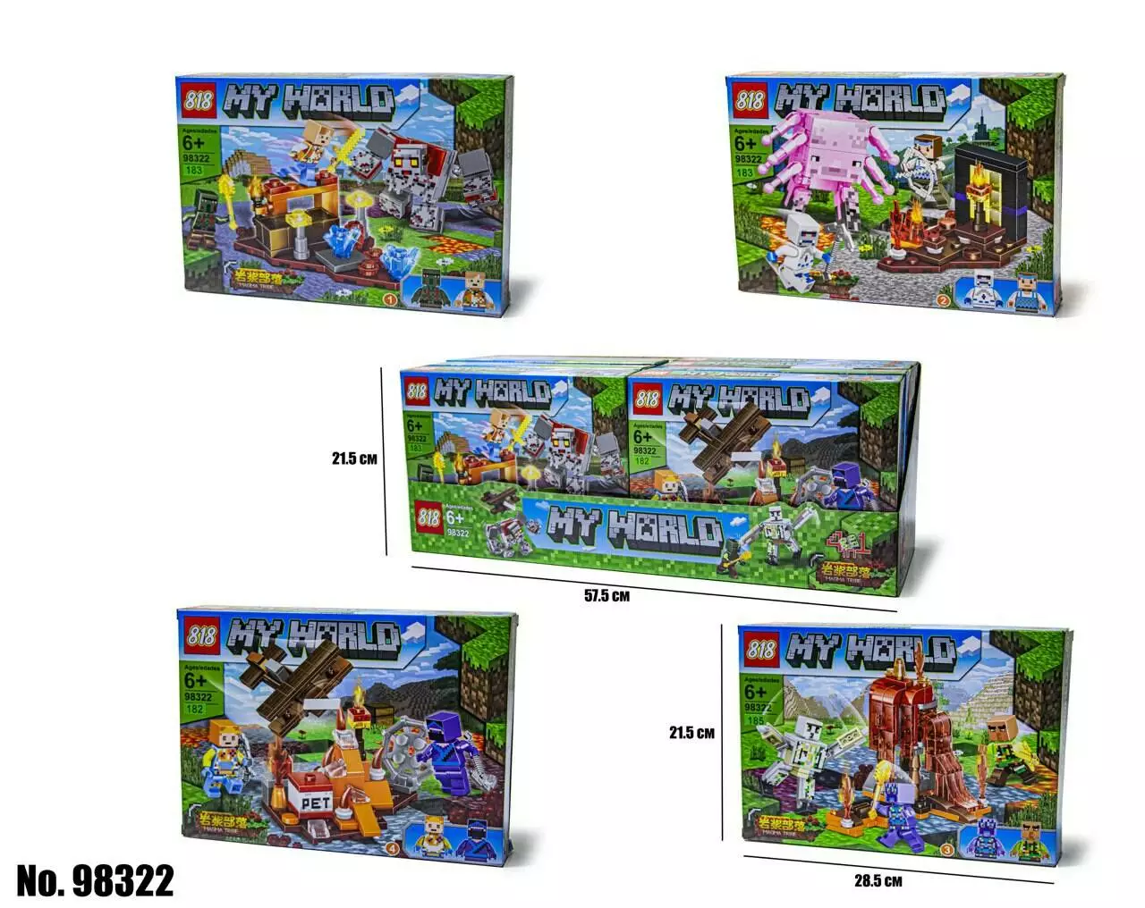 <p><em><strong>Конструктор Minecraft 98322 4 Вида</strong></em></p><br /> <p><strong>Цена за 1 Вид</strong></p><br /> <p>Конструктор Minecraft 4 Вида – это аналог известного производителя, созданный для поклонников одной из самых успешных компьютерных игр в истории – «Майнкрафт».</p><br /> <p>Серия конструкторов Minecraft по известной всем, без исключения легендарной игре. Больше десяти лет назад игру официально выпустили и практически сразу она завоевала огромную аудиторию поклонников от маленьких до взрослых. Основной особенностью игры является полностью редактируемый трехмерный мир, который состоит из блоков. </p><br /> <p>Тематический конструктор позволит ребенку воссоздать локации из популярной игры прямо у себя дома.Каждый вид включает в себя качественные детали и героя из известной локации , которые хорошо и надежно крепятся между собой.Приобретая все виды конструктора, ребенок сможет сложить целый сюжет.</p><br /> <p>Возможность воссоздавать неповторимый игровой мир, не прибегая к использованию компьютера, позволяет развить воображение у ребенка, а также стимулирует развитие мелкой моторики. Процесс строительства из красочных блоков конструктора очень увлекательный, у ребенка появляется возможность для творчества. Также это развивает логическое мышление, учит его сосредотачиваться и концентрироваться на поставленной задаче. Для детей и взрослых станет отличным способом совместного времяпровождения, ведь собирать конструктор вместе – это очень интересно. Все детали конструктора отлично совмещаются между собой, а так же прекрасно крепятся к конструкторам других марок. </p><br />