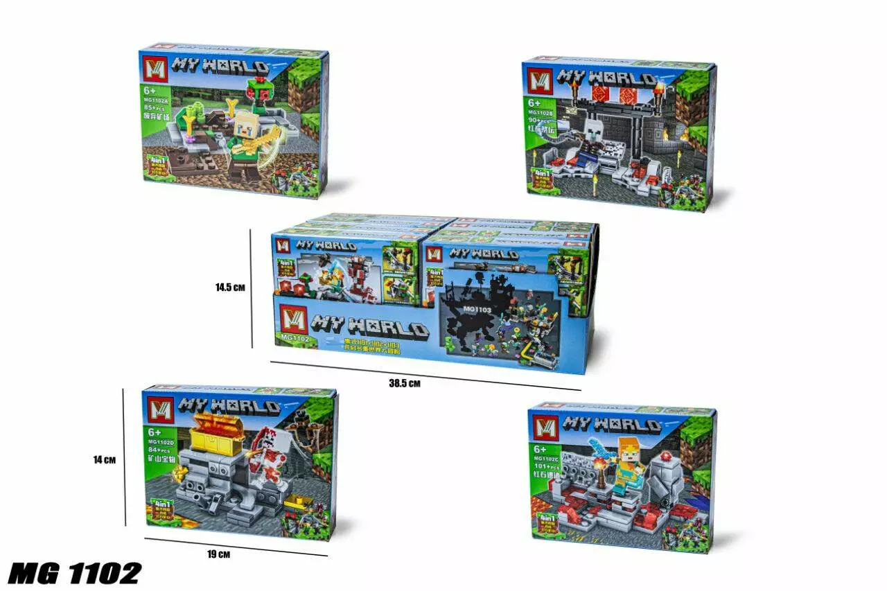 <p><em><strong>Конструктор Minecraft MG1102 4 Вида</strong></em></p><br /> <p><strong>Цена за 1 Вид</strong></p><br /> <p>Конструктор Minecraft 4 Вида – это аналог известного производителя, созданный для поклонников одной из самых успешных компьютерных игр в истории – «Майнкрафт».</p><br /> <p>Тематический конструктор позволит ребенку воссоздать локации из популярной мобильной игры прямо у себя дома.Каждый вид включает в себя качественные детали и героя из известной локации игры, которые хорошо и надежно крепятся между собой.Приобретая все виды конструктора, ребенок сможет сложить целый небольшой городок Майнкрафт.</p><br />