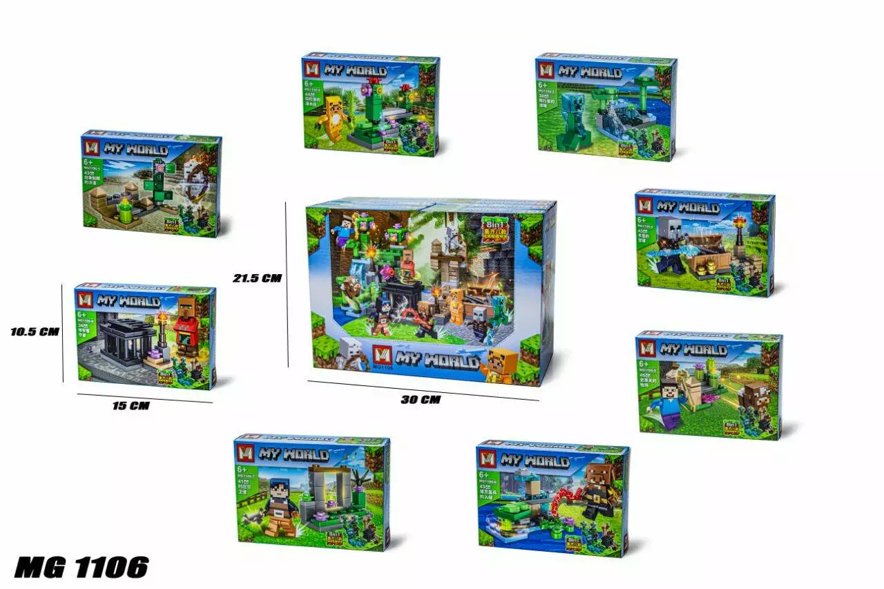 <p><em><strong>Конструктор Minecraft MG1106 8 Видов</strong></em></p><br /> <p><strong>Цена за 1 Вид</strong></p><br /> <p>Конструктор Minecraft 8 Видов – это аналог известного производителя, созданный для поклонников одной из самых успешных компьютерных игр в истории – «Майнкрафт».</p><br /> <p>Возможность воссоздавать неповторимый игровой мир, не прибегая к использованию компьютера, позволяет развить воображение у ребенка, а также стимулирует развитие мелкой моторики. Процесс строительства из красочных блоков конструктора очень увлекательный, у ребенка появляется возможность для творчества. Также это развивает логическое мышление, учит его сосредотачиваться и концентрироваться на поставленной задаче. Для детей и взрослых станет отличным способом совместного времяпровождения, ведь собирать конструктор вместе – это очень интересно. Все детали конструктора отлично совмещаются между собой, а так же прекрасно крепятся к конструкторам других марок. </p><br />