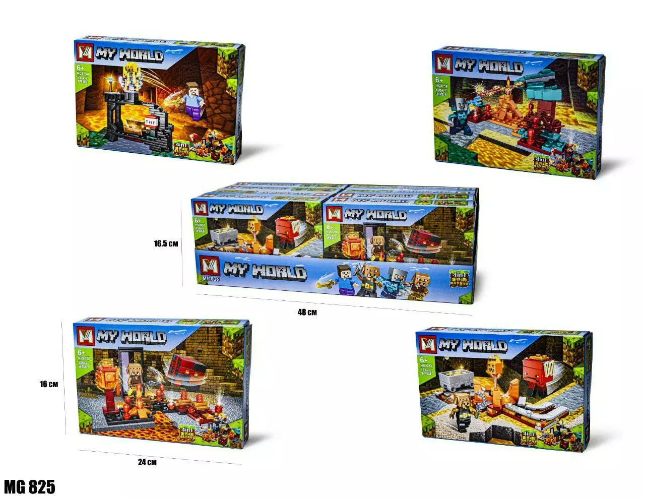 <p><em><strong>Конструктор Minecraft MG825 4 Вида</strong></em></p><br /> <p><strong>Цена за 1 Вид</strong></p><br /> <p>Конструктор Minecraft 4 Вида – это аналог известного производителя, созданный для поклонников одной из самых успешных компьютерных игр в истории – «Майнкрафт».</p><br /> <p>Тематический конструктор позволит ребенку воссоздать локации из популярной мобильной игры прямо у себя дома.Каждый вид включает в себя качественные детали и героя из известной локации игры, которые хорошо и надежно крепятся между собой.Приобретая все виды конструктора, ребенок сможет сложить целый небольшой городок Майнкрафт.</p><br />