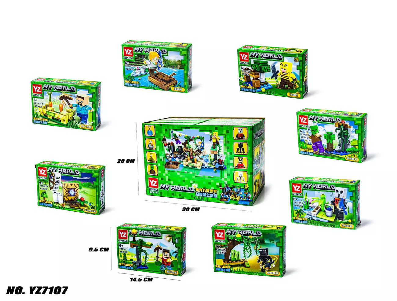 <p><em><strong>Конструктор Minecraft YZ 7107 8 Видов</strong></em></p><br /> <p><strong>Цена за 1 Вид</strong></p><br /> <p>Конструктор Minecraft 8 Видов – это аналог известного производителя, созданный для поклонников одной из самых успешных компьютерных игр в истории – «Майнкрафт».</p><br /> <p>Тематический конструктор позволит ребенку воссоздать локации из популярной мобильной игры прямо у себя дома.Каждый вид включает в себя качественные детали и героя из известной локации игры, которые хорошо и надежно крепятся между собой.Приобретая все виды конструктора, ребенок сможет сложить целый небольшой городок Майнкрафт.</p><br />