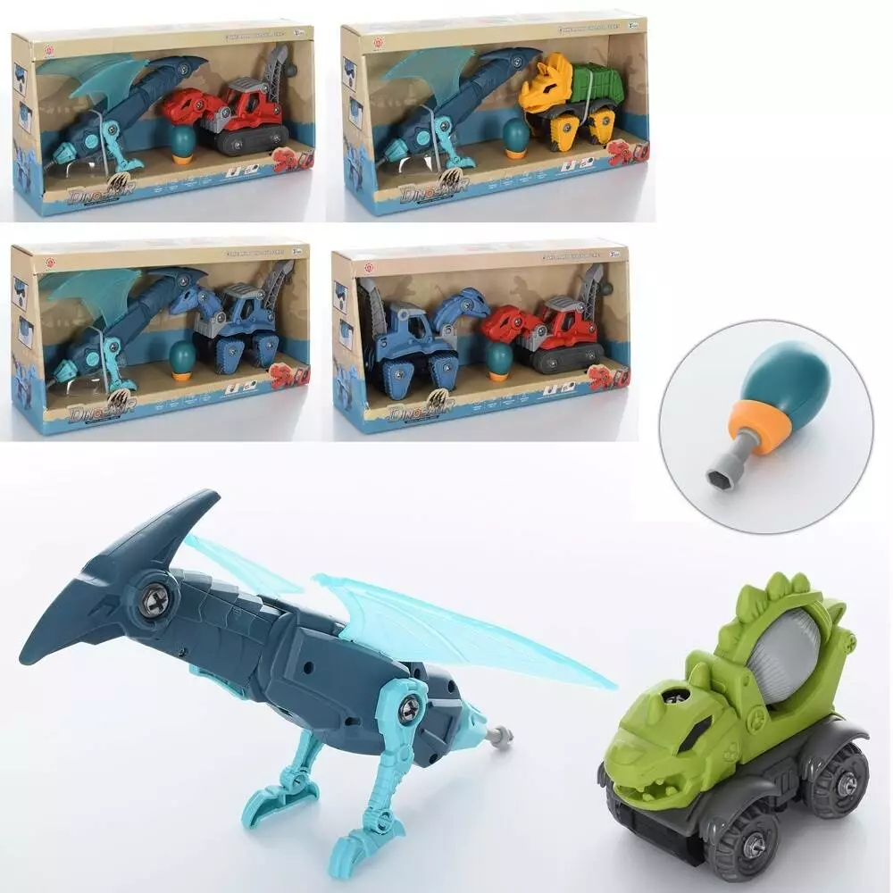 Конструктор QL7121-11C-7316C-7407C-7501C на шурупах, транспорт, динозавр,5видів,кор.,43,5-21-11,5см.