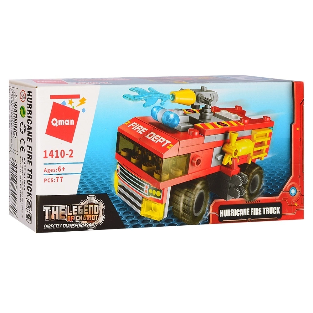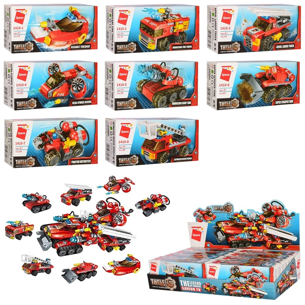 Конструктор Qman 1410 (96шт) пожежна техніка, від 57дет, 8 шт (8 видів) в дисплеї, 43-10-20см