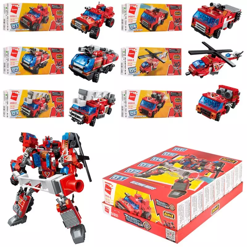 Конструктор Qman 1416 транспорт, від 76 дет., 6 шт. (6 видів) в диспл., 22,5-10-28см.