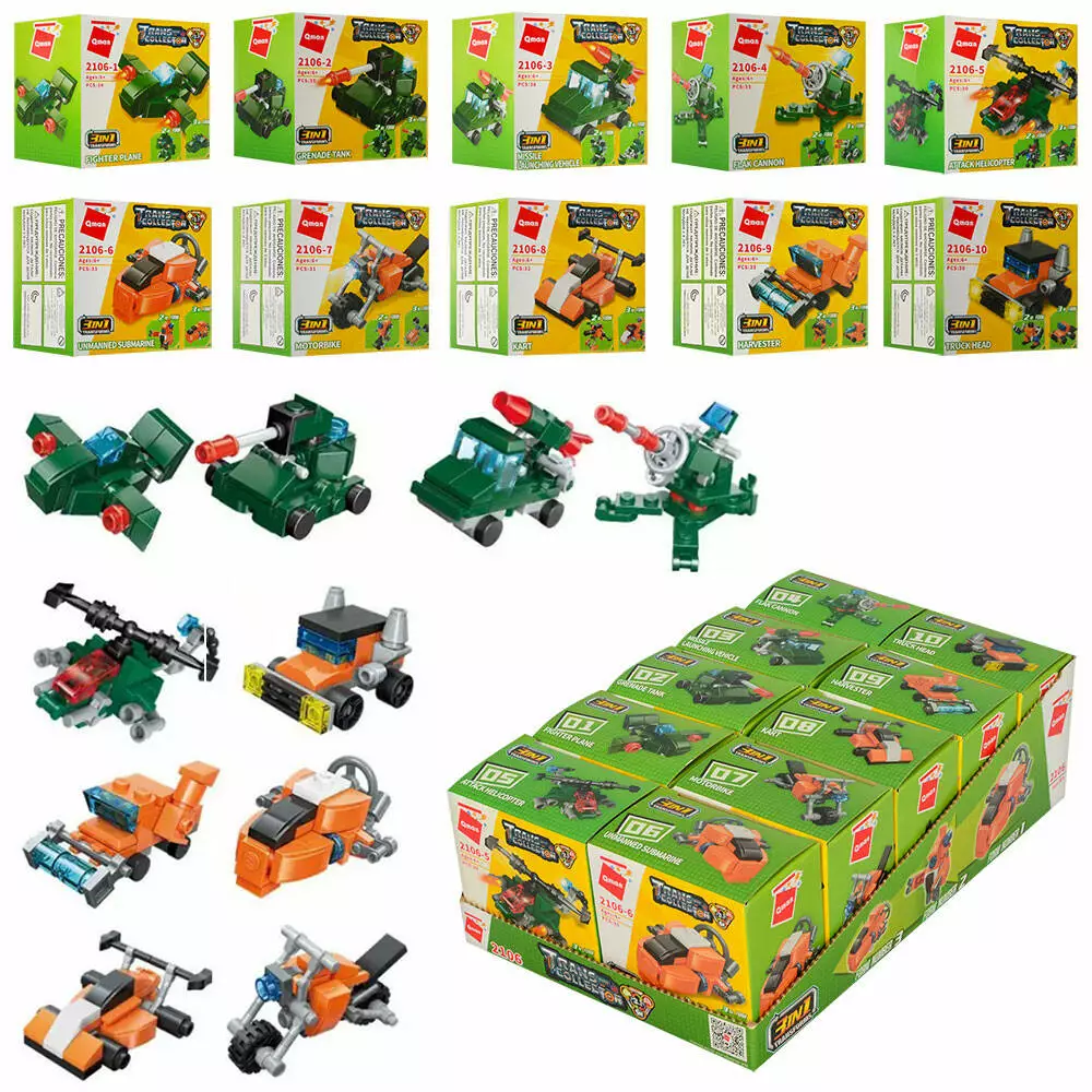 Конструктор Qman 2106 транспорт, від 30дет., кор., 10шт.(10видів) в диспл., 14,5-7,5-24см.