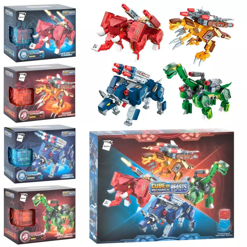 Конструктор Qman 41225 трансформер тварина+куб, 4 шт. (4 види) в диспл., 37-28-7 см.