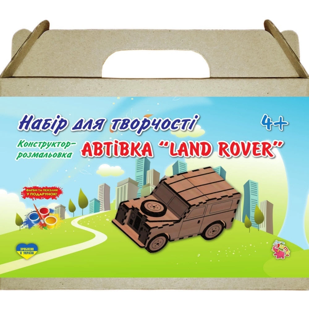 Справжнім маленьким колекціонерам автівок сподобається Land Rover з дерева. Конструктор-розмальовка виготовлений з екологічно чистого матеріалу. Скласти таку автівку дуже легко завдяки схемі-інструкції, а зробити таку іграшкову машинку унікальною можна розмалювавши її на свій смак. До набору входять фарби і пензлик, деталі та інструкція. Гладенька поверхня всіх деталей нетравматична і безпечна дя дітей. Така іграшка проявлятиме у дітей цікавість до творчості, розвиватиме кольоровідчуття, стимулюватиме тактильні відчуття. Машинка-конструктор стане яскравим доповненням сюжетно-рольових ігор дітей. Стать: Хлопець Вік : від 4 років Ширина: 50 мм. Висота: 190 мм. Довжина: 220 мм. Торгова марка: TM Jumbi Упаковка: Коробка Матеріал: Дерево