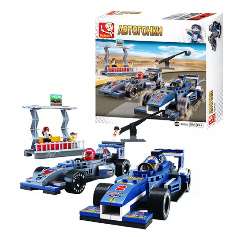 Конструктор SLUBAN M38-B0355 "Автоперегони", машинки, фігурки 5 шт., 300 дет.