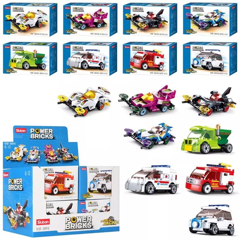 Конструктор SLUBAN M38-B0916 транспорт, від 49 дет., кор., 16 шт. (8 видів) в диспл., 29-20-19 см.