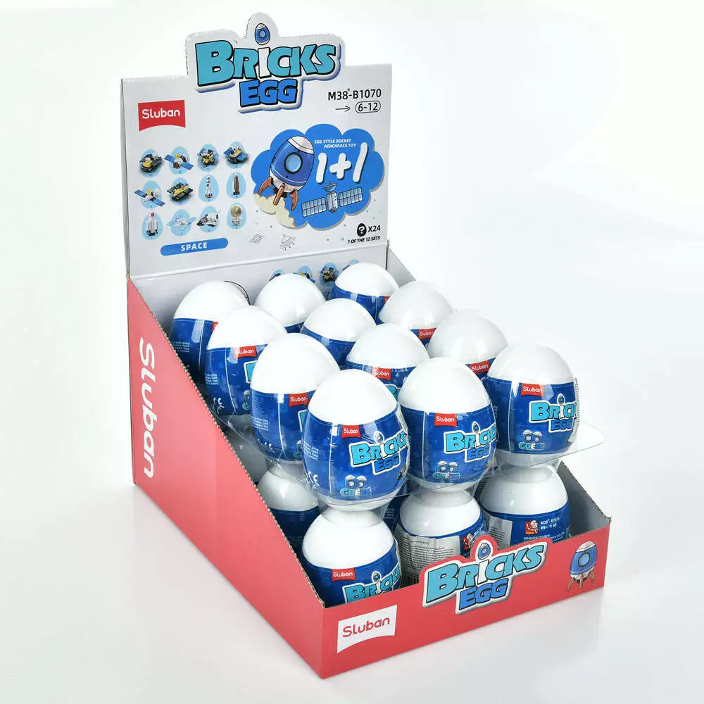 Конструктор SLUBAN M38-B1070 космічний транспорт, яйце(сюрприз),24шт.(12 видів)в диспл.,20,5-16-27см