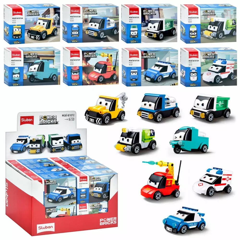 Конструктор SLUBAN M38-B1072 машинки, інерц., від 37дет., кор., 16шт. (8 видів)в диспл.,28,5-19-19см