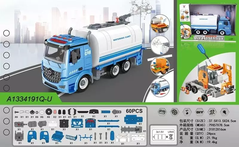 Конструктор YW9082C на шурупах, водовоз, викрутка, 60дет., муз., світло, бат.