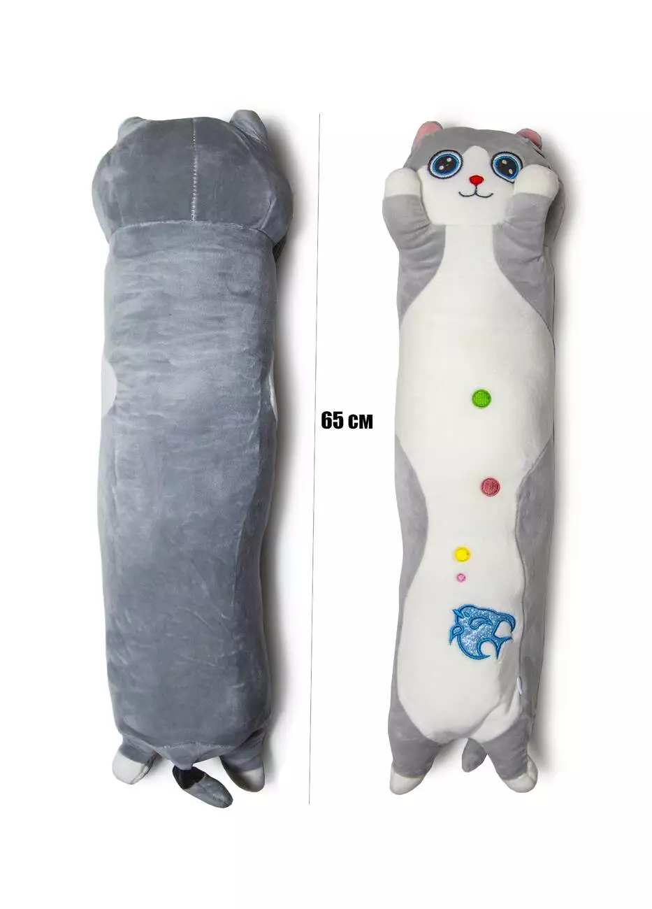 <p>Длинный Кот Батон 65 см - стильная мягкая игрушка необычной формы. Изделие выполнено в виде котика, с маленькими лапками, коротким хвостиком и длиным упитанным туловищем. Все мелкие элементы мордочки представлено в упрощенном мультяшном стиле. Цвета окраса котика достаточно мягкие и нежные. Дизайн игрушки позволяет разносторонне её использовать. Помимо участия в детских постановках, длинный Кот Батон станет отличным расслабляющим средством, если мять его в руках. Так же плюшевый может оказаться достойной замечательной заменой подушечке, если положить его под шею во время длительной поездки в автомобиле. И само собой разумеется что такая примечательная игрушка хорошо впишется интерьер гостинной или детской.</p><br />