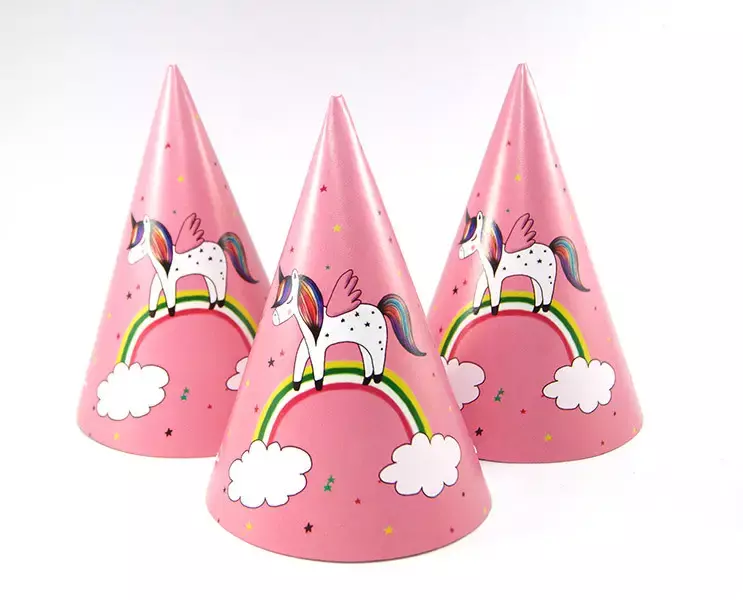 Відмінний декор для святкування дитячого дня народження. Висота - 15 см. Кількість в упаковці - 20 шт. Є резиночка для фіксації ковпачка на голові.