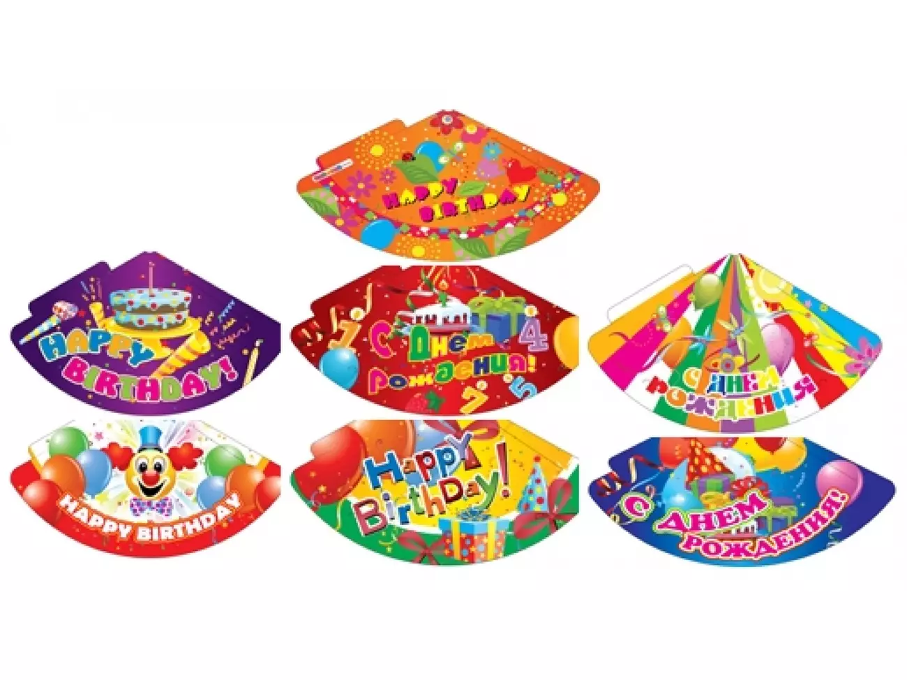 Ковпаки святкові "С днем рождения" ВЕЛИКІ (радіус 16см) з глітером (6шт. в наборі)