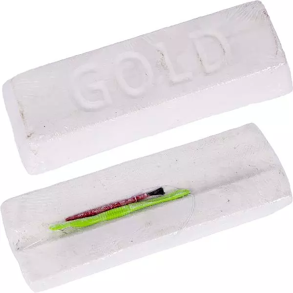 Набір для проведення розкопок "Золотий злиток". Тепер кожен зможе відчути себе шукачем скарбів. Ретельно розкопуючи скам'янілий злиток спеціальним інструментом, Ви знаходитимете різні бісерини та монети. Далі, "скарби", потрібно очистити від пилу пензликом, промити та просушити. З'єднавши бісерини та монети за допомогою гумки, можна створити гарний браслет.