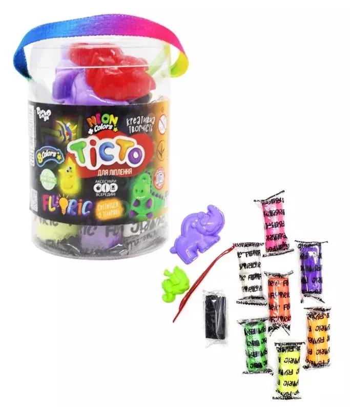 Креативна творчість "Тісто для ліплення "FLUORIC" TMD-FL-8-01U (укр) (12) туба 8 кольорів "Danko Toys"