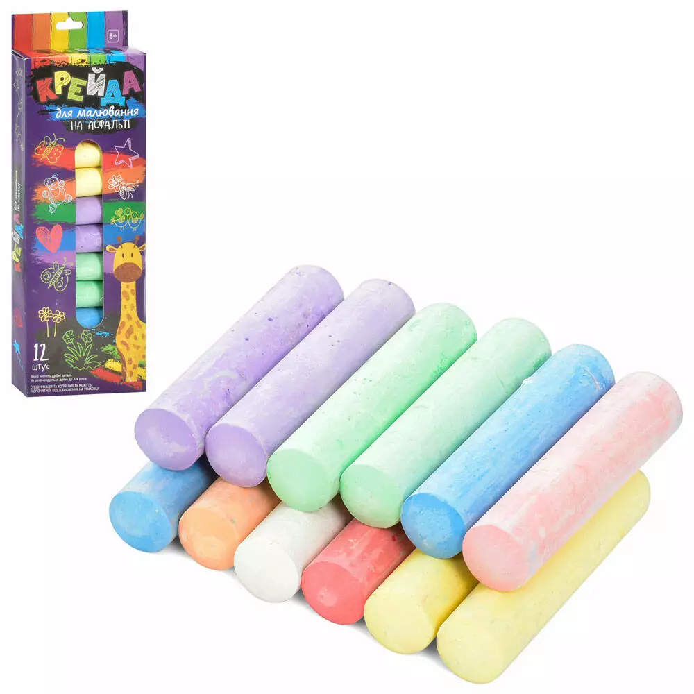 Крейда MK 4709 12 шт., велика, кольорова, 5-6 кольорів, кор., 31-11-2,5 см.