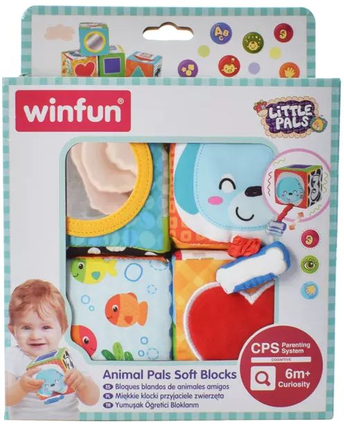 Кубики 0178-NI WinFun м'які, навч. (цифри, тварини), розтяжка, шарудить, дзеркальце, кор.