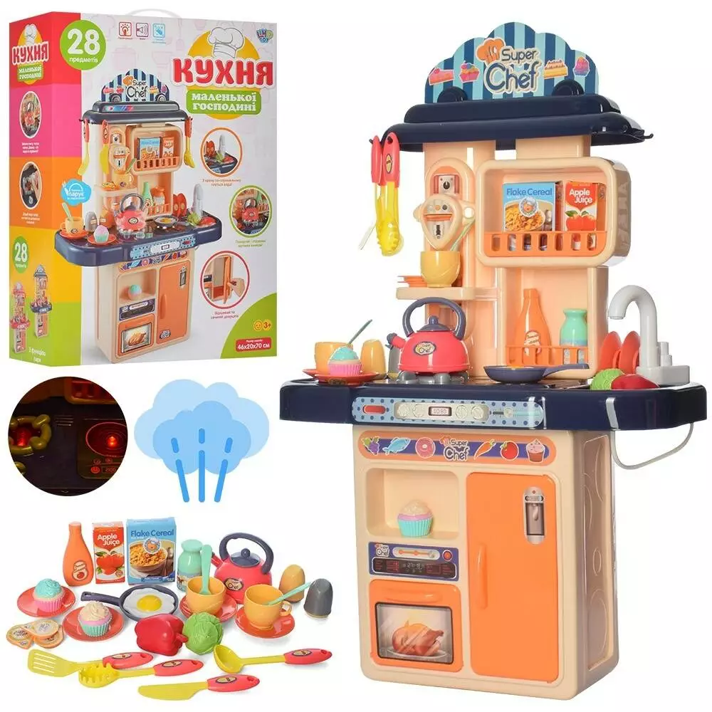 Кухня 16854A плита, мийка, продукти, муз., світло, бат., кор., 35-47-15 см.