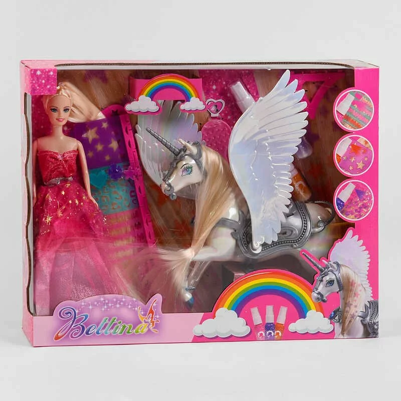 Лялька з конем 68267 (24/2) пегас, трафарет, 3 фарби для волосся, аксесуари, в коробці