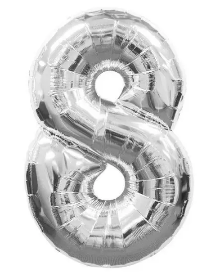 Кульки надувні фольговані MK 2723-1 (1000шт) цифри, 18 дюймів, цифра 8,срібло