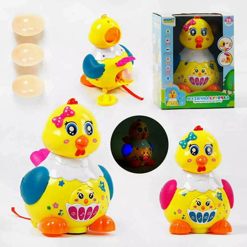 Курочка на батарейках 15580 (24) ""TK Group"" ОЗВУЧУВАННЯ УКРАЇНСЬКОЮ МОВОЮ, 2 види, колесо вільного ходу, мелодії, казки, світло, несе яйця, в коробці