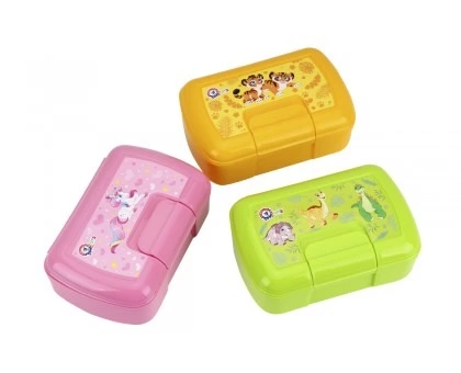 Швидкий, а головне, корисний перекус - запорука дотримання здорового способу харчування для дітей та дорослих. Щоб взяти в дорогу канапку, фрукти чи горіхи потрібний зручний і безпечний контейнер. Ланч бокс від ТехноК стане незамінним для школи й дитячого садочку, прогулянки, пікніку чи подорожі, Компактний розмір, заокруглені кути та надійна защіпка роблять ланч бокс зручним для сумок та рюкзаків. Особливості ланч боксів ТехноК: - безпечний пластик, без стороннього запаху. Не містить фталатів і BPA. Це означає що виріб не викликає алергію і в ньому можна зберігати в ньому холодні продукти; - надійна защіпка гарантує міцну фіксацію; - кришка контейнера з'єднана з нижньою частиною, вона не загубиться та не переплутається з іншими; - ланч бокс можна мити у посудомийній машині та зберігати у холодильнику; - яскрава наліпка з милими малюнками нанесена методом IML (InMould Label). Малюнок надійно закріплений, не відривається і не змивається Характеристики: - об'єм -900 мл - розміри 16,3х10,7х6 см, вага 89 г - різні кольори та милі наліпки на вибір