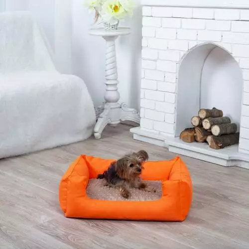 Лежанка для кота и собаки Комфорт оранжевый с бежевым S - 60 x 45
