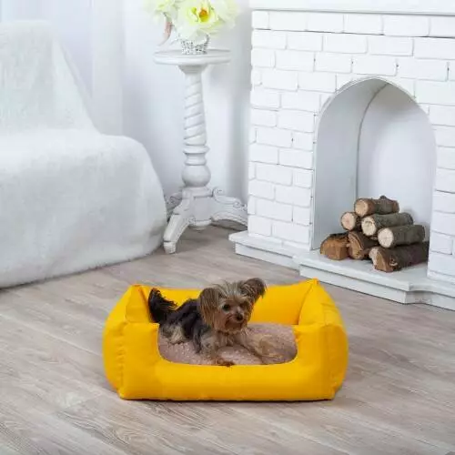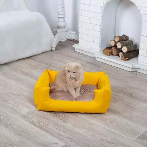 Лежанка для кота и собаки Комфорт желтая с бежевым S - 60 x 45