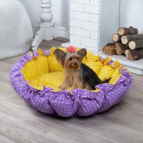 Лежанка для кота и собаки Корзина фиолетовая с желтым