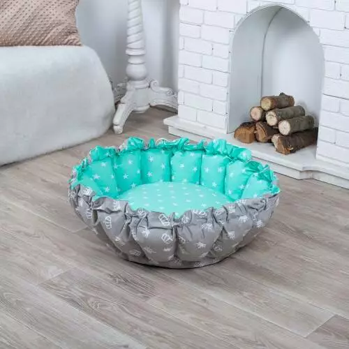 Лежанка для кота и собаки Корзина серая с мятным