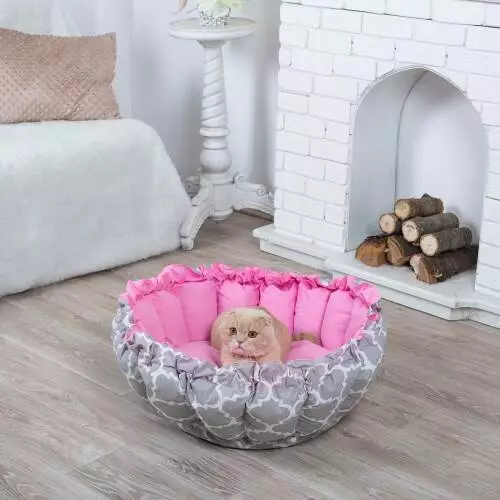 Лежанка для кота и собаки Корзина серая с розовым