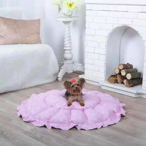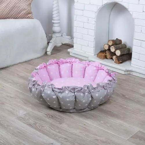 Лежанка для кота и собаки Корзина Звезды серая с розовым