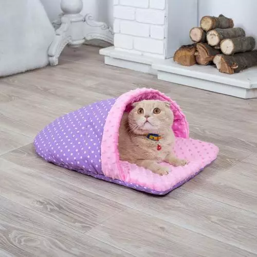 Лежанка для кота и собаки Тапочек фиолетовая с розовым