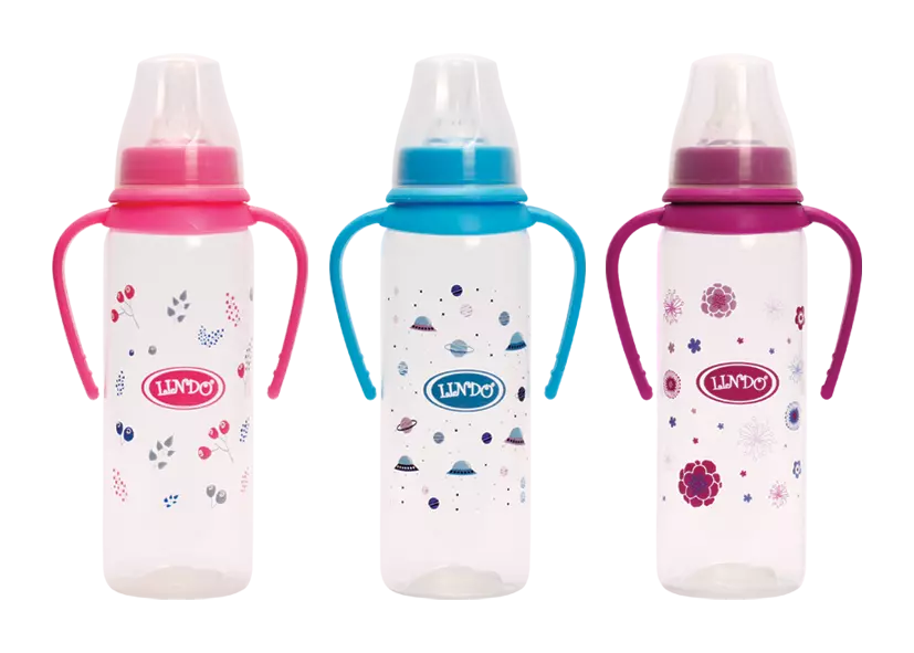 Пляшка кругла з ручками і силіконової соскою ТМ Lindo, об'ємом 250 мл. Призначена для дітей від 3 міс. Матеріал: поліпропілен і 100% силікон. Термостійка (до 130?С), легка, ударостійка, сприяє розвитку навичок дитини тримати пляшку. Особлива форма дозволяє маляті самостійно тримати пляшку в звуженому місці. Вона також сприяє розвитку координації рухів рук дитини. Не містить бісфенол А (Bisphenol-A, BPA) і фталати (Phtalates)! Відповідає вимогам Американської Комісії з Питань Безпеки Товарів для Споживачів та Стандартів Європейського Союзу. Відповідає вимогам стандарту EN14350. Товар має висновок державної санітарної-епідеміологічної експертизи і рекомендований до застосування.