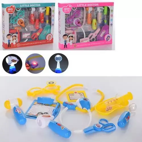 Лікар 009-1-4-7 мед.інструменти,стетоскоп,окуляри,3кольори,муз.,світло,бат.(таб),кор.,36,5-29-4,5см.