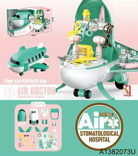 Лікар 10J08 мед. інструменти, окуляри, 30 предм., стіл-літак, кор., 43-25-21,5 см.