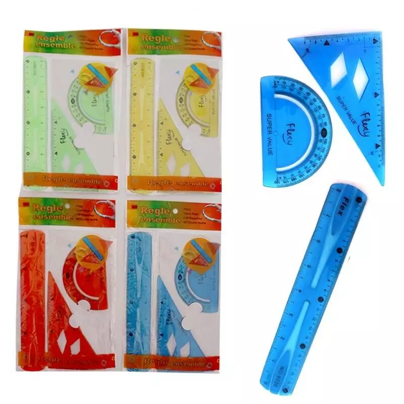 Лінійка-неламайка, набір 3 шт, (лінійка 20см, трикутник і транспортир), Імп